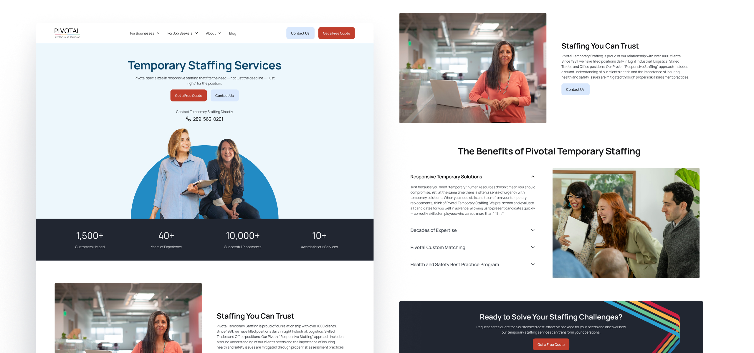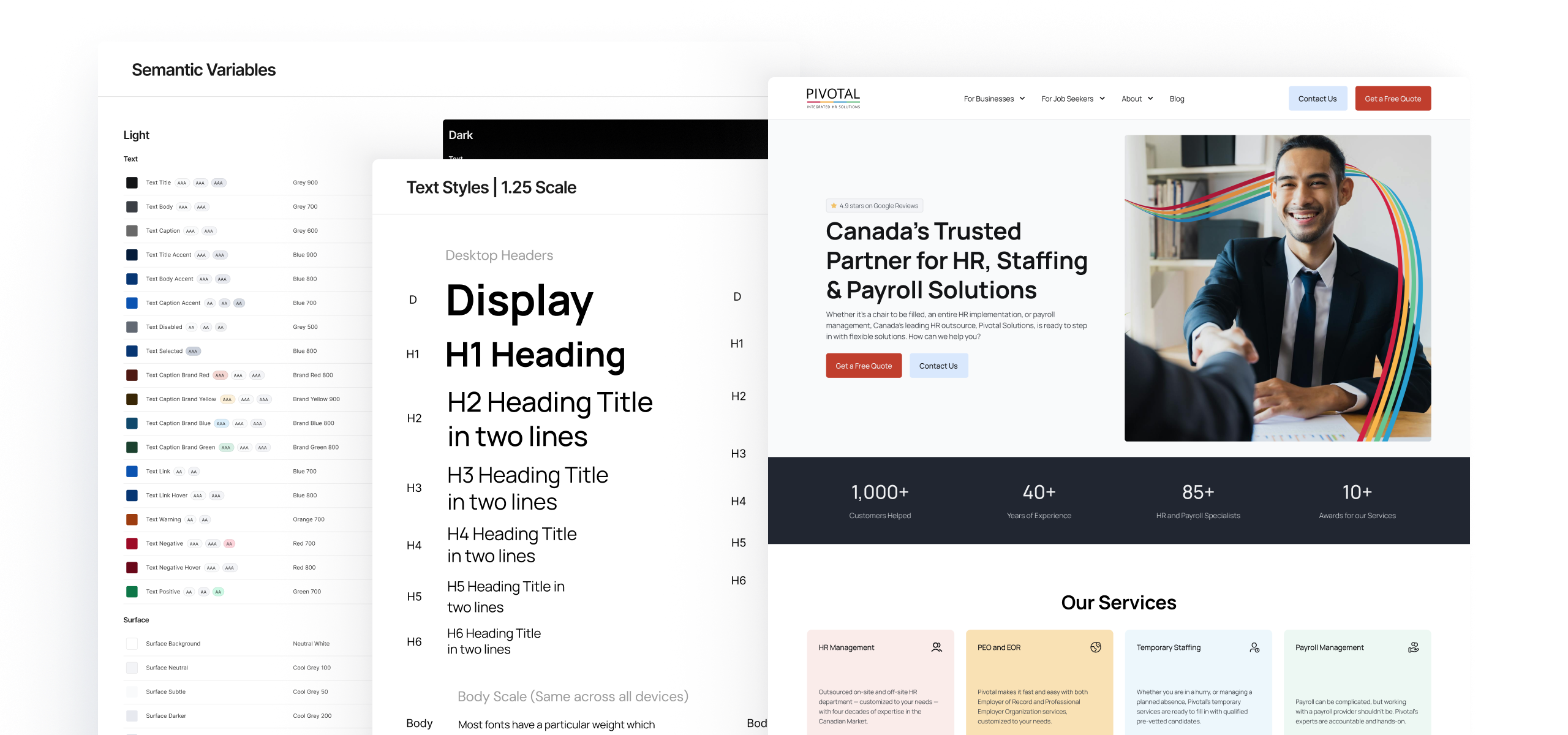 The result is a flexible design system that can scale with our web presences, curated user experiences for both job seekers and businesses, and a visual design that reflects our brand values.